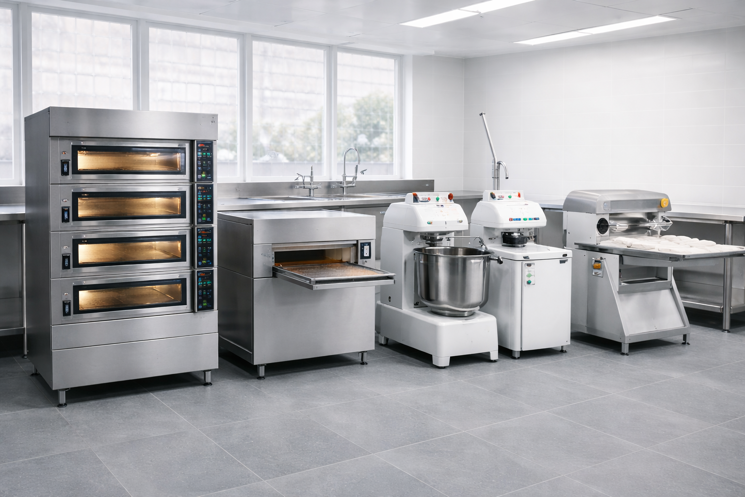 Hornos, amasadoras, divisoras y laminadoras para panaderías, repostería y producción de pizza con resultados uniformes y eficientes.